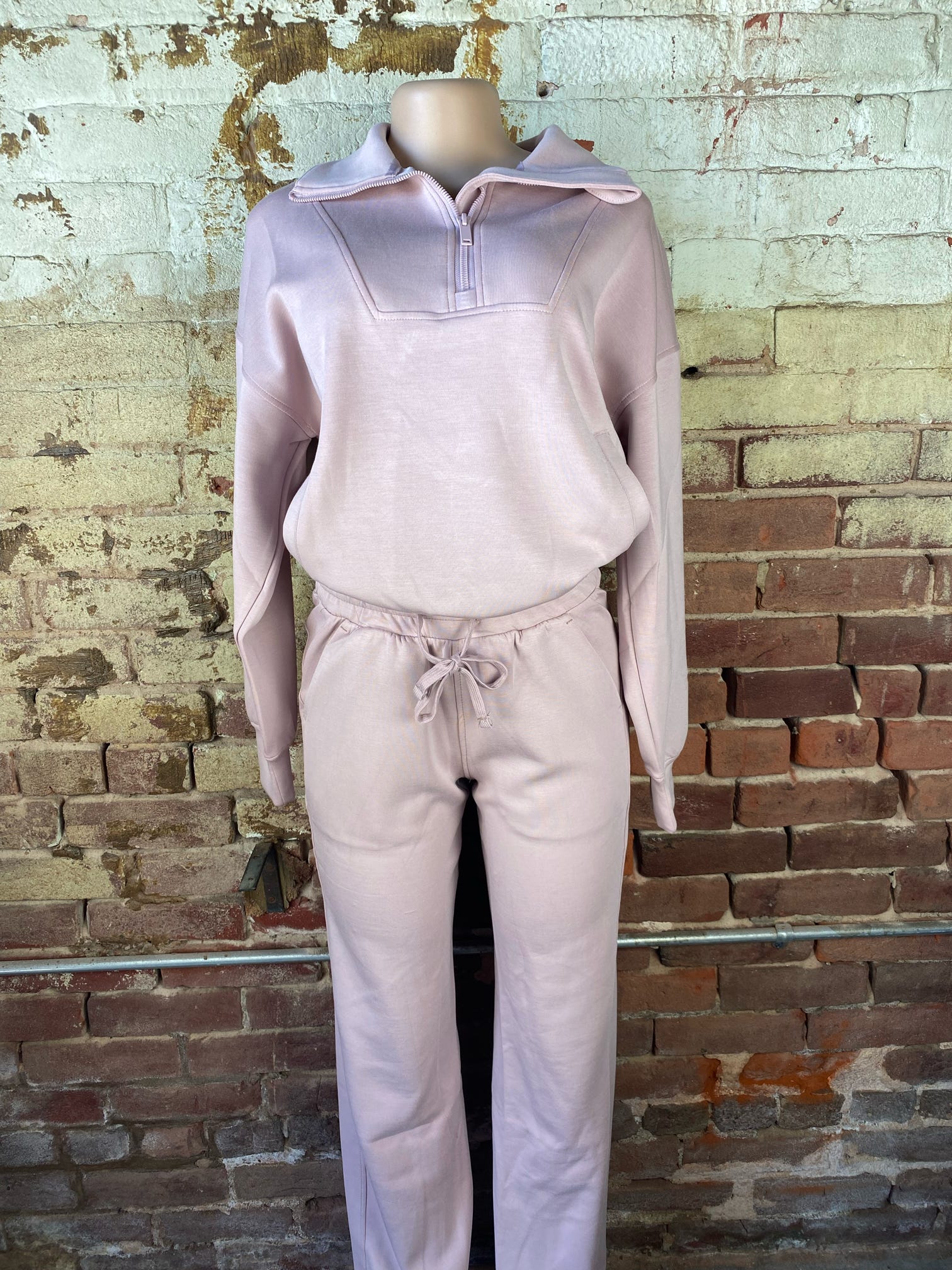 Stay cozy and stylish with this buttersoft half-zip pullover and matching sweatpants. Designed with a relaxed fit, this sweathsirt features a zip-up collar for comfort and a modern touch. The kangaroo pocket adds both function and style, making it perfect for layering on casual days, lounging at home, or running errands. These breathable soft pants include a drawstring that provides changable comfort for daily wear. These two togther are a staple in your closet for an effortlessly chic look. 48% modal 45% polyester 7% spandex