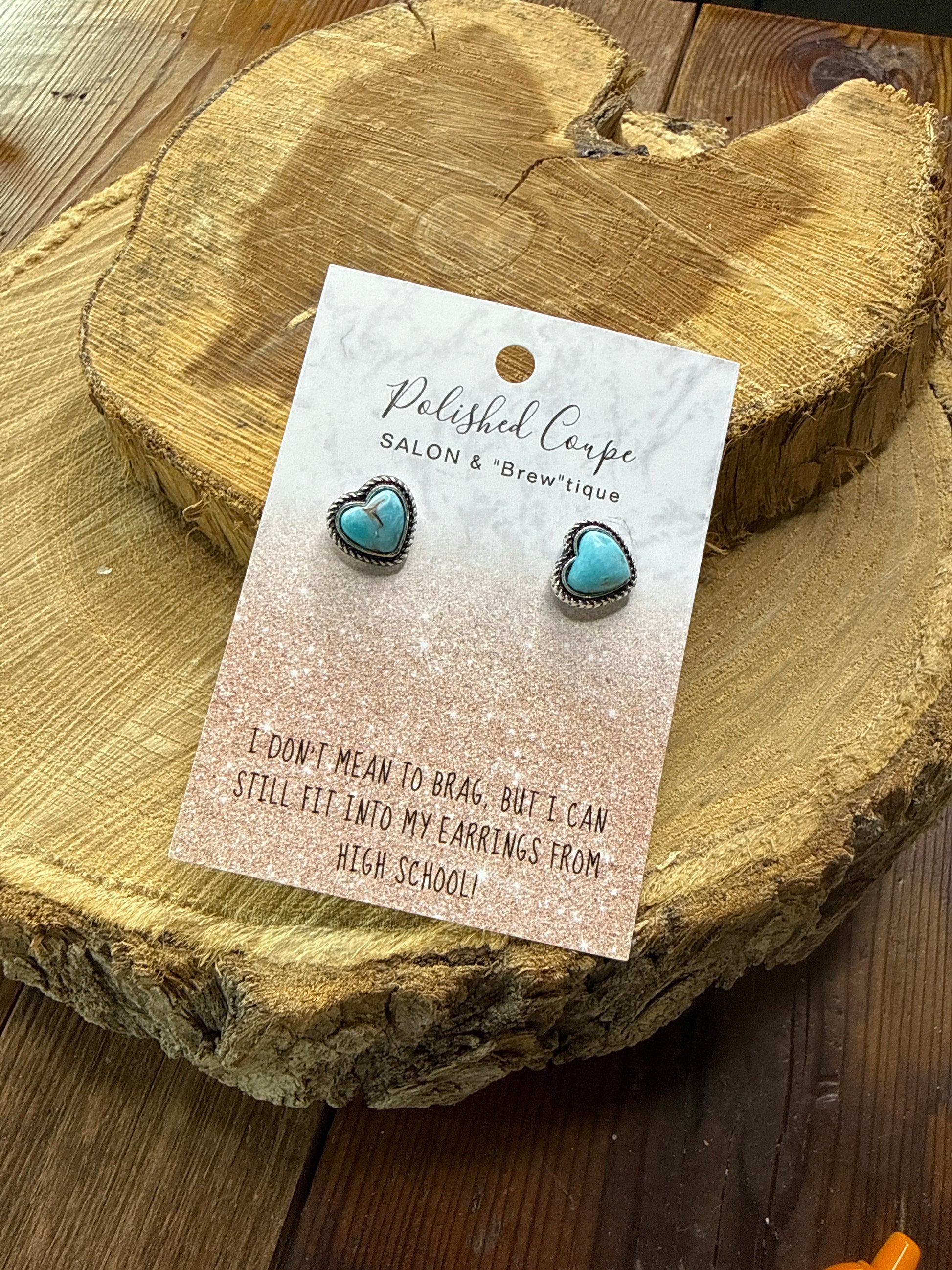Silver & faux turquoise stone heart earrings