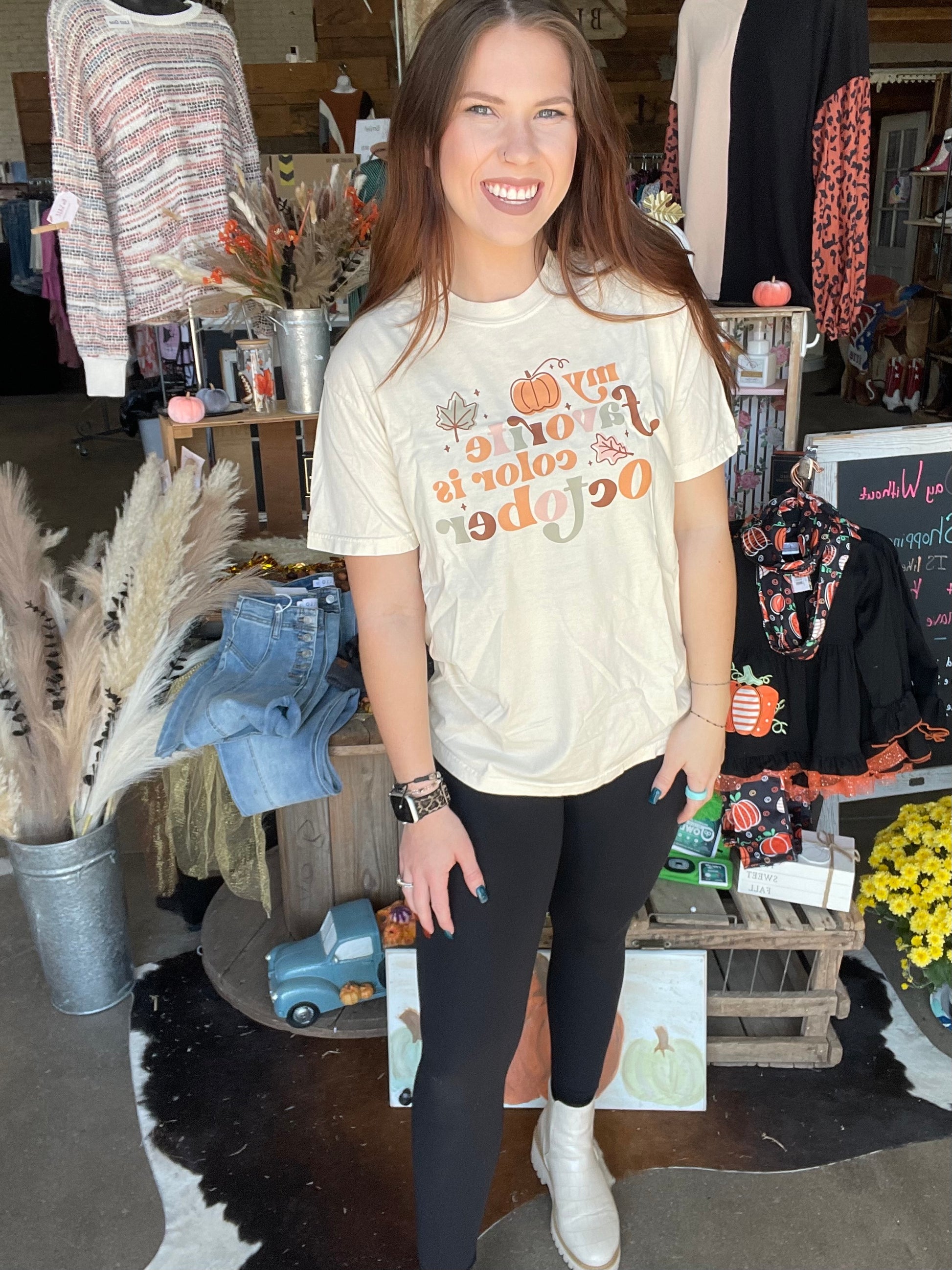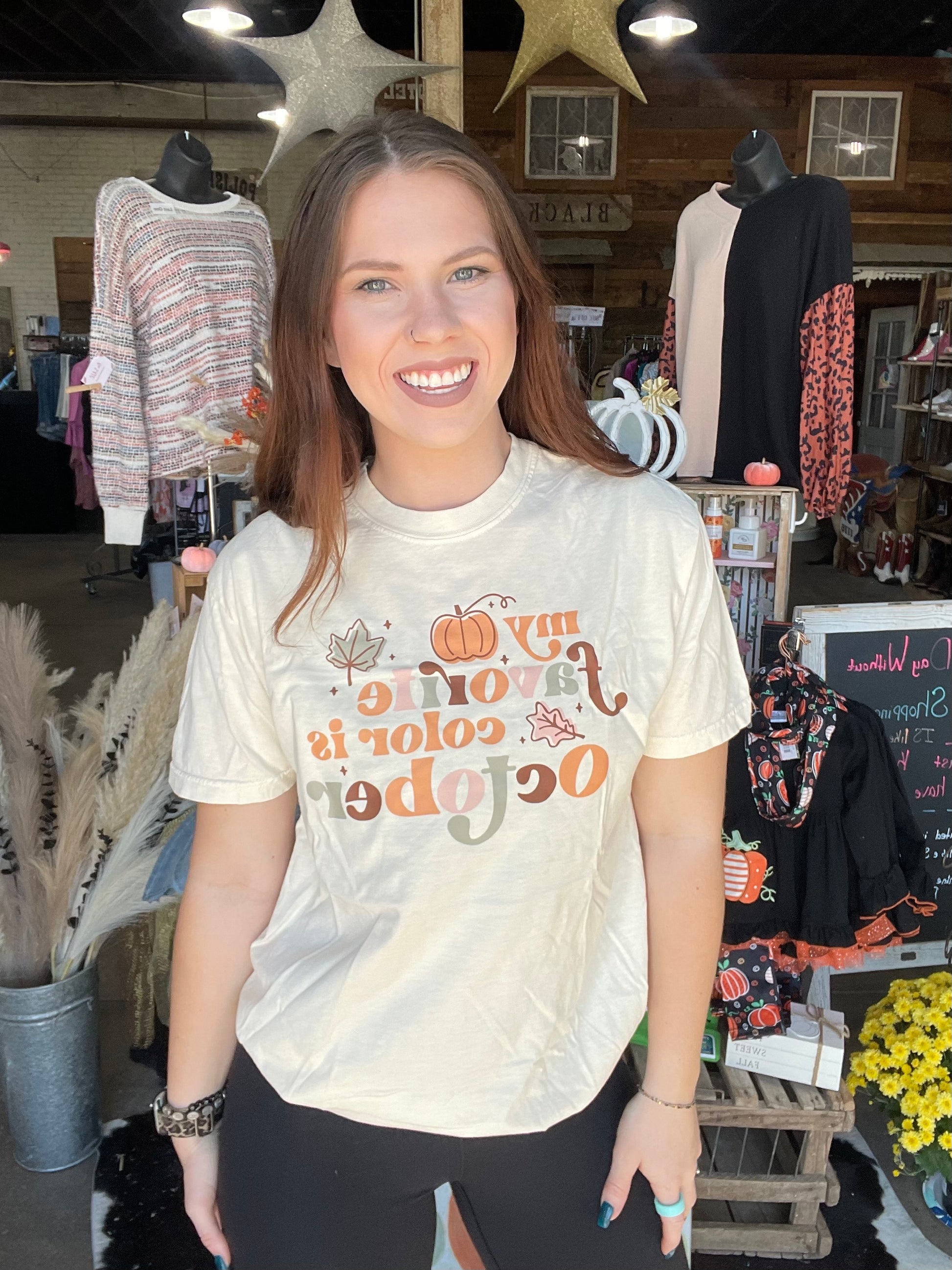 Color comforts Tee, ivory base with fun fall yet piky colors TTS