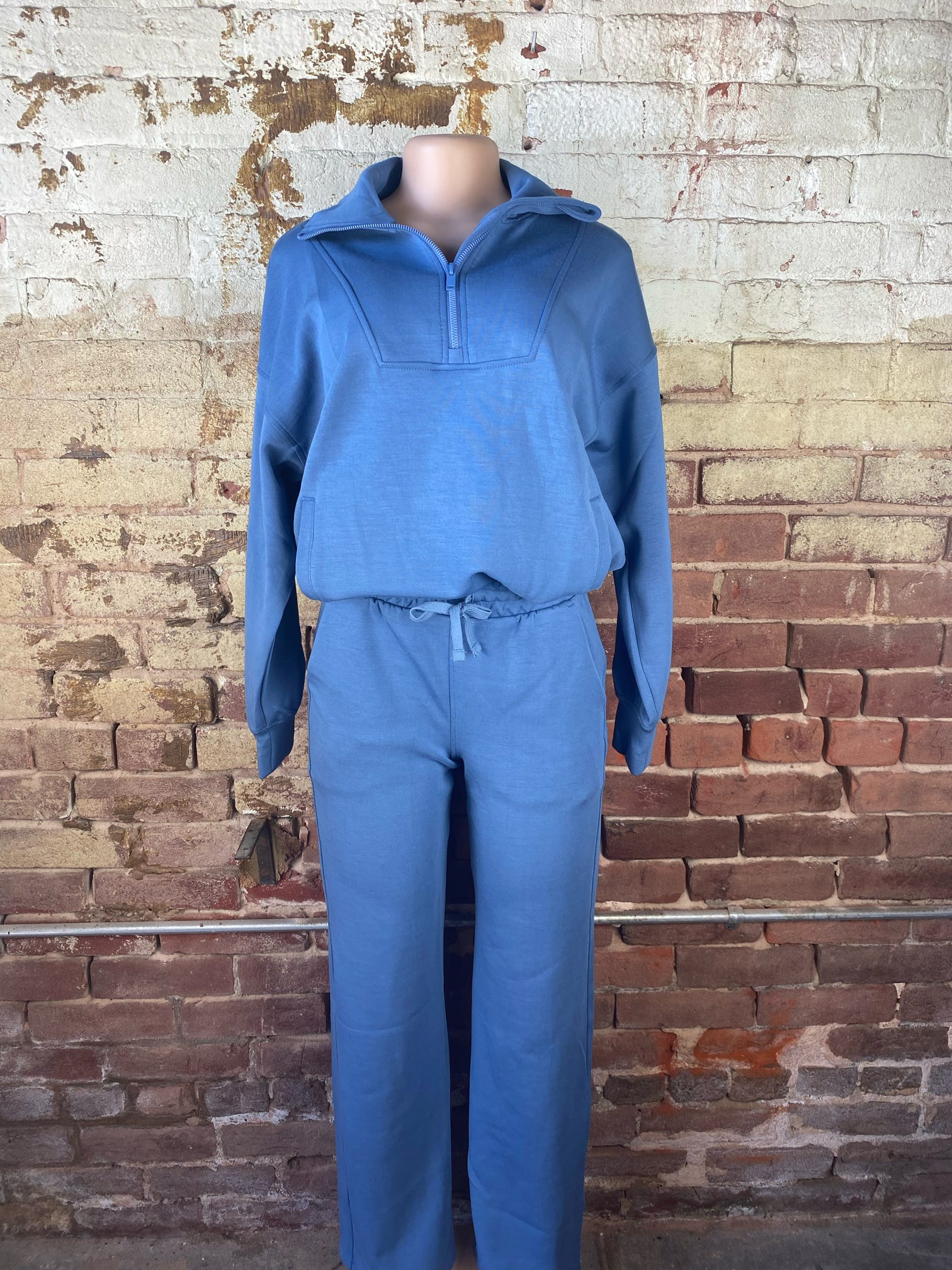Stay cozy and stylish with this buttersoft half-zip pullover and matching sweatpants. Designed with a relaxed fit, this sweathsirt features a zip-up collar for comfort and a modern touch. The kangaroo pocket adds both function and style, making it perfect for layering on casual days, lounging at home, or running errands. These breathable soft pants include a drawstring that provides changable comfort for daily wear. These two togther are a staple in your closet for an effortlessly chic look. 48% modal 45% polyester 7% spandex
