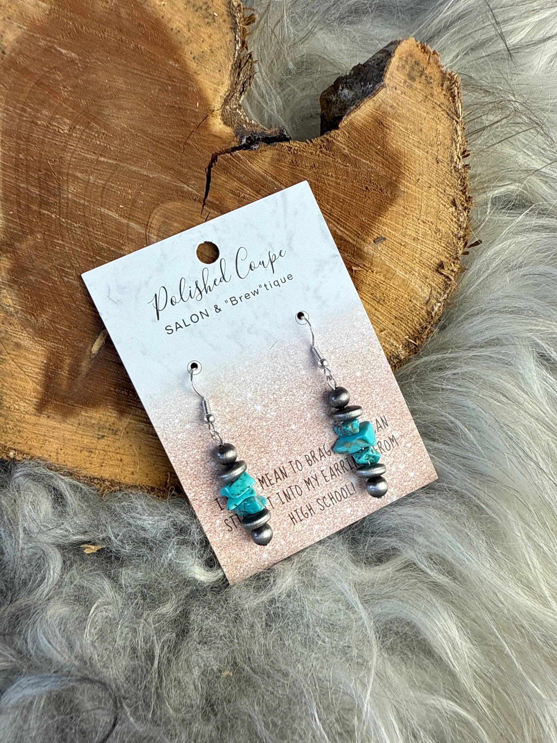 Adding a western flare to your wardrobe for Navajo, pearl and turquoise dangling down for a light weight look