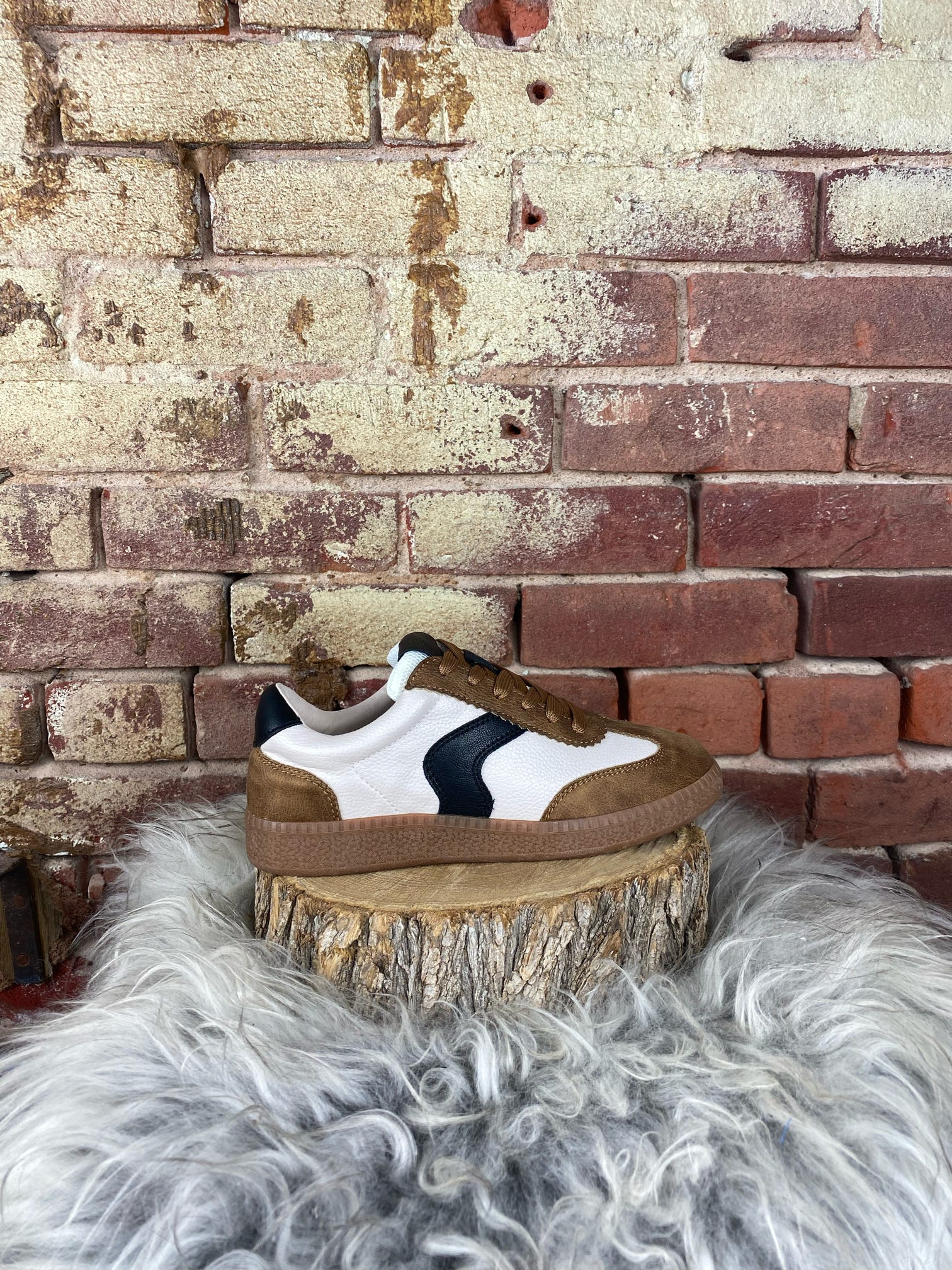 Step up your casual style with these retro-inspired sneakers, blending comfort and modern edge. These feature a white body with rich brown suede accents and bold black detail. The gum sole adds a vintage touch while providing all-day comfort and durability. Make these sneakers your new go-to outfit finisher.