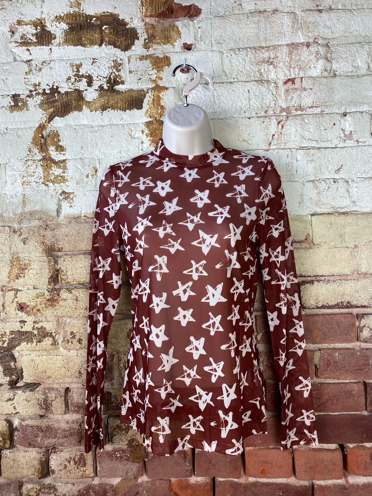 Make a statement with our star-patterned top, a perfect blend of comfort and style. This vibrant red, long-sleeved top is adorned with a playful white star pattern, making it an eye- catching addition to any outfit. The soft, breathable fabric ensures all day comfort, while the classic cut offers a flattering fit and is just the thing you need for layering any outfit. Fits true to size. 92% Polyester 8% Elastane